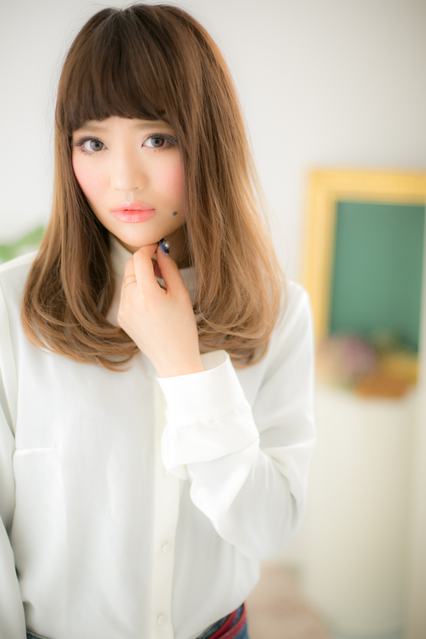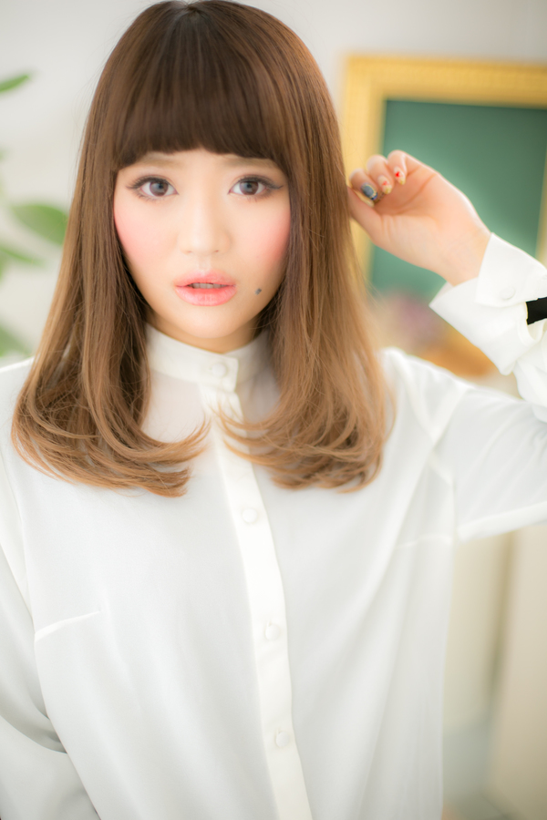 眉上前髪で目力UP♪グラデカラーの個性ロング