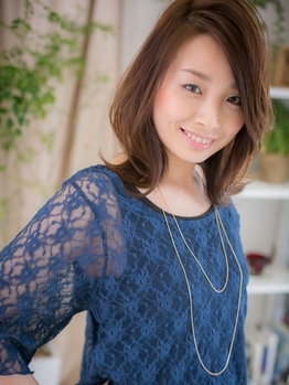 伸ばしかけのハネてしまう毛先を可愛く変身させたミディアムスタイル。くびれを作っているので、スッキリした印象に!カジュアルダウンなお洋服と合わせて、女っぽさを足してあげても可愛いスタイル。