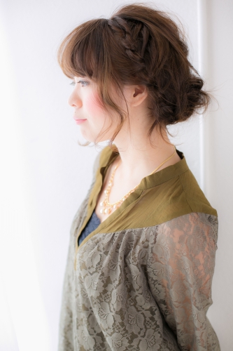 ゆるーくふんわり☆これからのパーティシーズンにオススメのUPスタイル!サイドの編みこみがオシャレ度を上げてくれます!前髪も一緒に編みこんでスッキリまとめても可愛く仕上がります♪アッシュべ―ジュ,オレンジアッシュ,マーメイドアッシュで旬を先取り★