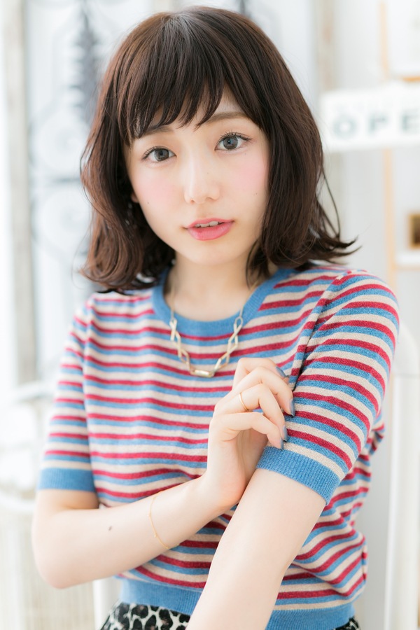 斜めバングで目力UP♪小顔ラブふわミディ