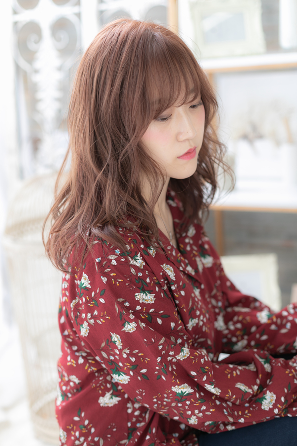 顔周りにレイヤーを足すことでより動きが出て大人女子のファション度UP。くせ毛風ふわミディは前下がりで小顔にしたり耳かけも◎斜めバングや厚めバング、シースルーバングで目力強調もOK。トリートメントしたようなカラーリングで髪の毛の悩みも解決!人気のカラーやピンク系のカラーもおすすめ!40代のエラ張り対策にも◎(メイク担当:COVERHAIRGROUP成田)