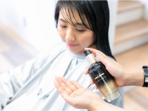 ④仕上げにユイル クロノジストを使用し、さらに髪にツヤと潤いを与えます。