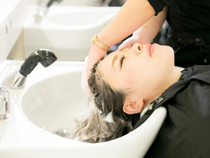 ①コットンのような弾力のある泡のキューティクルシャンプーで、髪を保護しながらしっかり洗い上げます。