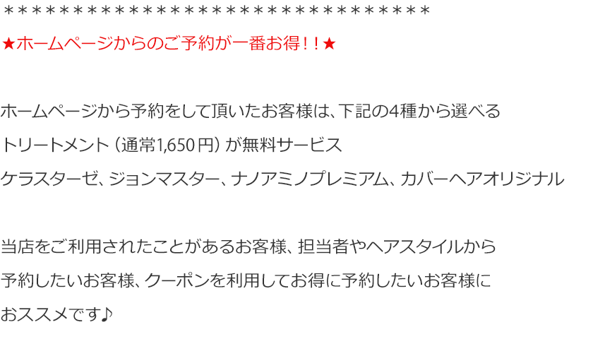 【ネット予約はこちらから】 ★一番お得な、オリジナル予約サイト http://saloon.to/r/g/10760/m/1761/ ↑こちらでご予約の方は、ケラスターゼ・ジョンマスターなど4種の選べるトリートメント(通常1500円)が無料♪ ★ホットペッパービューティー http://b.hpr.jp/sd/H000125669/ ネット予約×の場合でもお電話ください。 レセプションがご案内致します! TEL:048-776-1280 ★オリジナルアプリでPointが貯まる!使える!★ ご予約はもちろん、ポイントが『貯まる・使える』お得で便利なアプリです♪ お得な情報もメッセージへ配信しています♪ ≪アプリストアで、「カバーヘアー」で検索≫ 次回ご来店時のお会計からポイントを貯められます! ※来店時にスタッフへ一言お声かけ下さい。 【初回お試しスタイリスト 指名無料】 今まで担当したことのないスタイリストを指名したい場合は、初回指名料は無料です。 安心して任せられる“あなたに合ったスタイリスト”を 是非、見つけてください♪ 【最新のヘアスタイルはこちらから】 http://www.cover-s.jp/style/ レングスやなりたいイメージから、検索できるヘアカタログ。 あなたに“似合う”スタイルがきっと見つかります♪ ***************************** モッズヘア上尾西口店は、COVER HAIR グループのヘアサロンです。