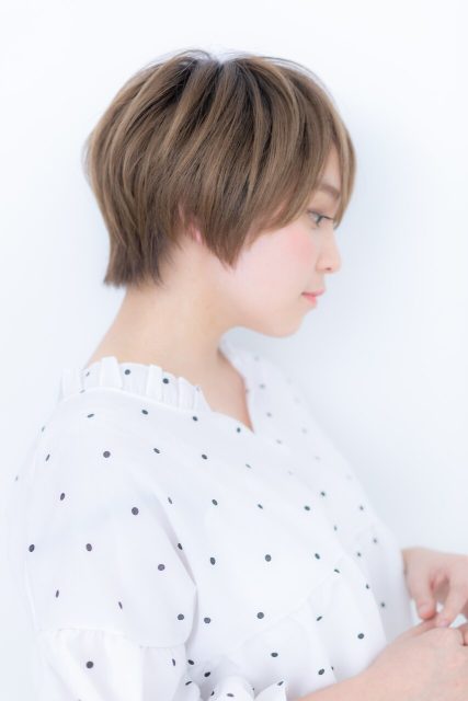 襟足を短くし、首元がすっきりと見えるのとトップやサイドにはふんわりとしたボリュームがをつけ全体のシルエットがとても綺麗です!