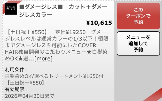 1.500円分トリートメントサービスがございますのでお得です!