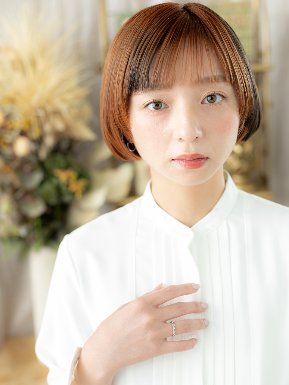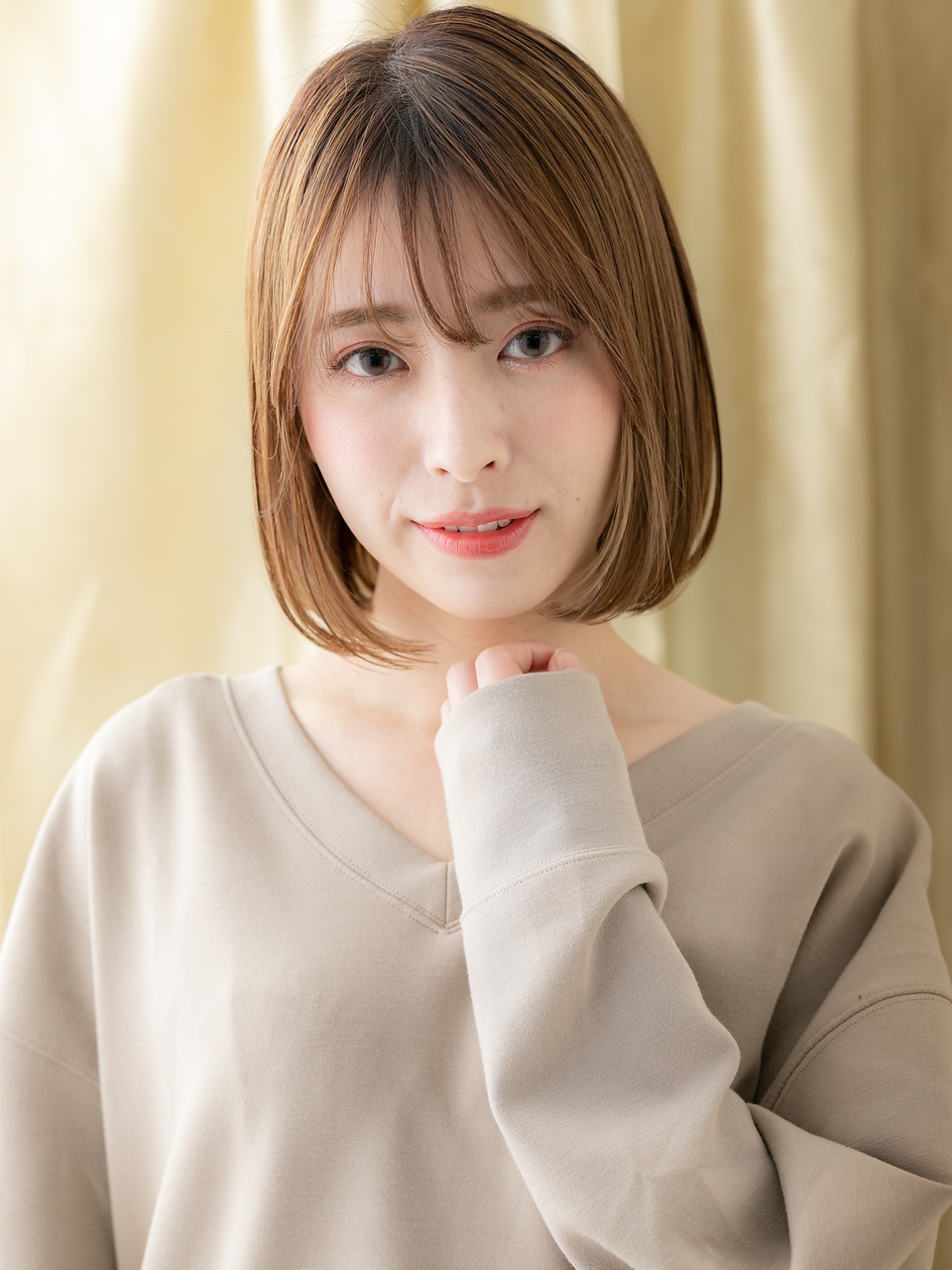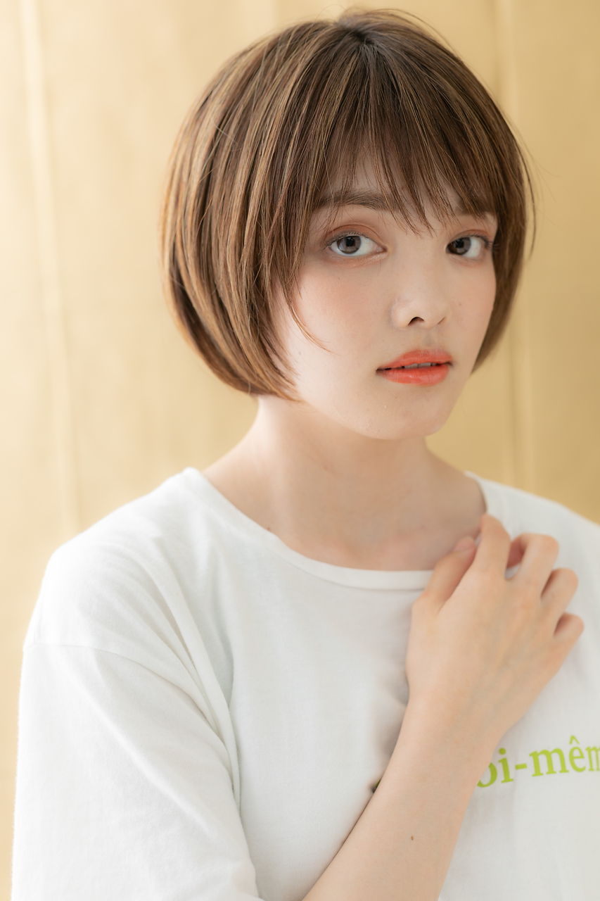 シースルー前髪,鎖骨ミディアム,オン眉,フレンチガーリー,ボブウルフ,ミニボブ,厚めバング,無造作,重めスタイル,くびれショート,切りっぱなしボブ,モード,クラシカル,セミディ,重めスタイル,髪型,ヒアルロン酸ブラウンカラーは白髪にも対応
