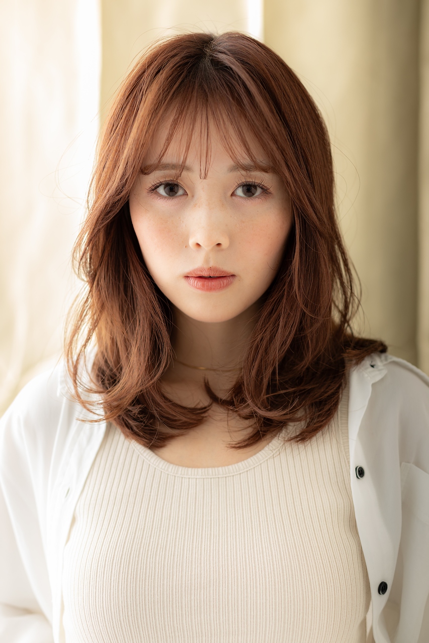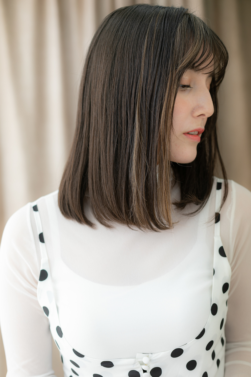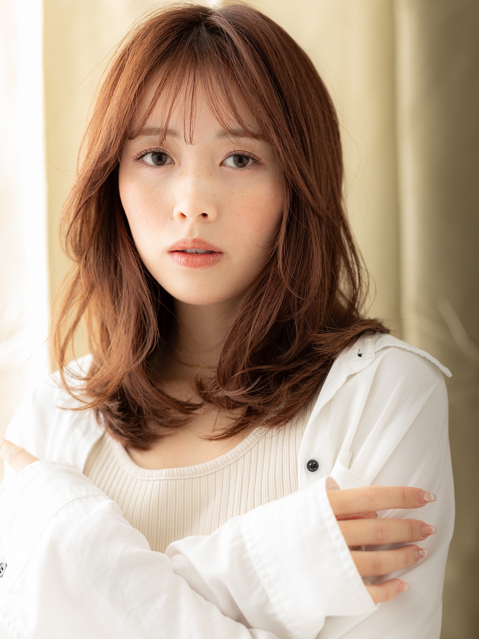 シースルー前髪,鎖骨ミディアム,オン眉,フレンチガーリー,ボブウルフ,ミニボブ,厚めバング,無造作,重めスタイル,くびれショート,切りっぱなしボブ,モード,クラシカル,セミディ,重めスタイル,髪型,ヒアルロン酸ブラウンカラーは白髪にも対応