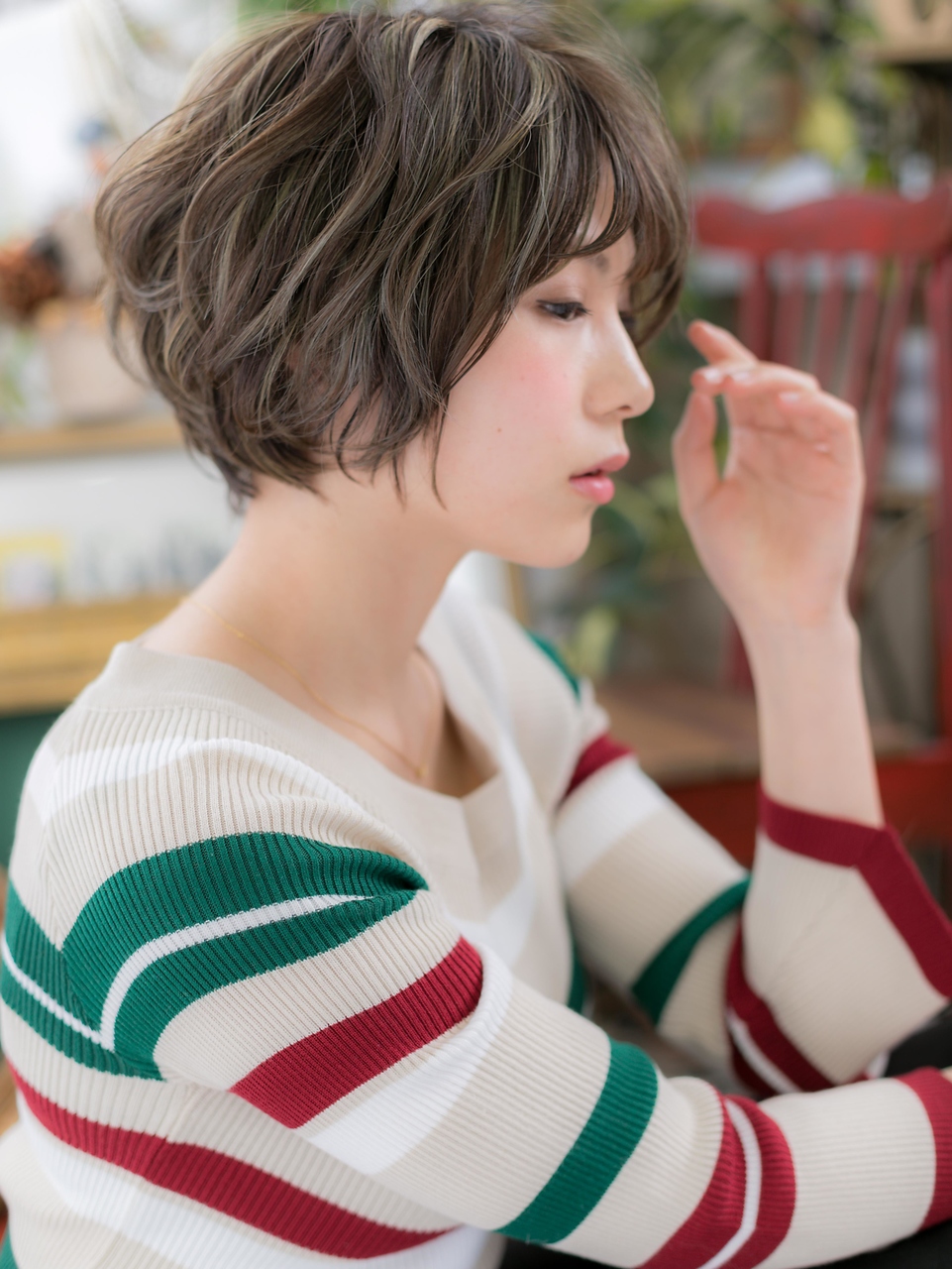 バレイヤージュ/切りっぱなしボブ/ミニボブ/大人ハイライト/韓国風/ウェットヘア/ウルフ/ナチュラルマッシュショート/ショートマッシュ/丸みショート/オリーブアッシュ/くすみカラー/くびれショート/ナチュラル