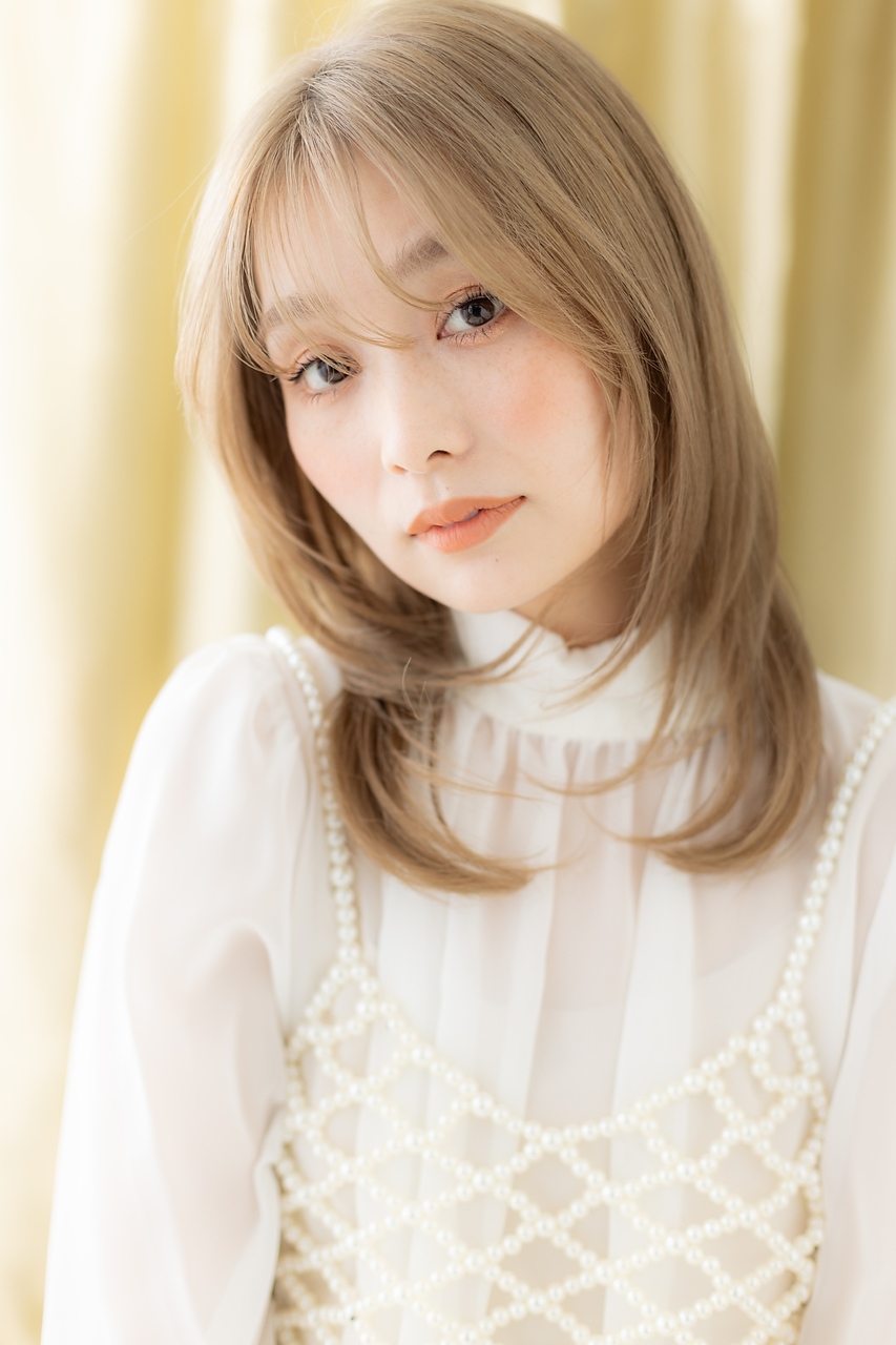 透明感ダブルカラーくびレイヤーミディアムウルフ