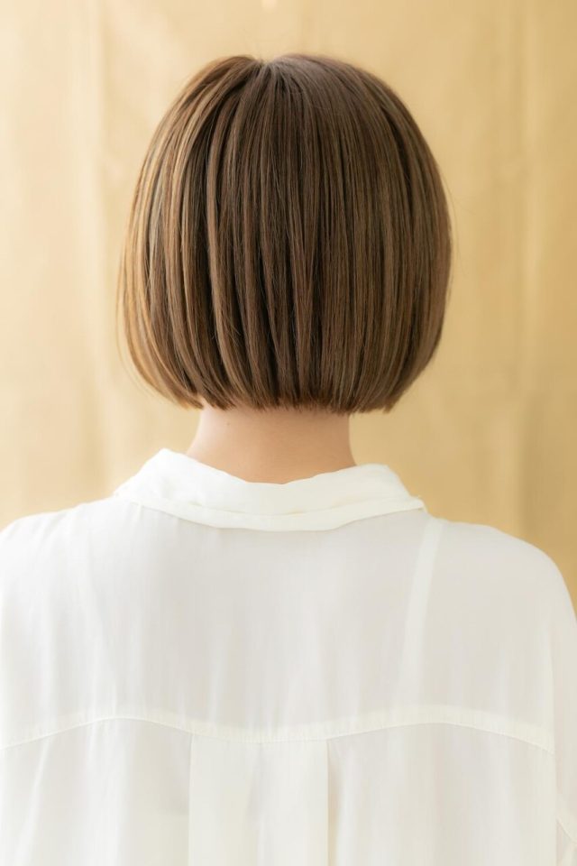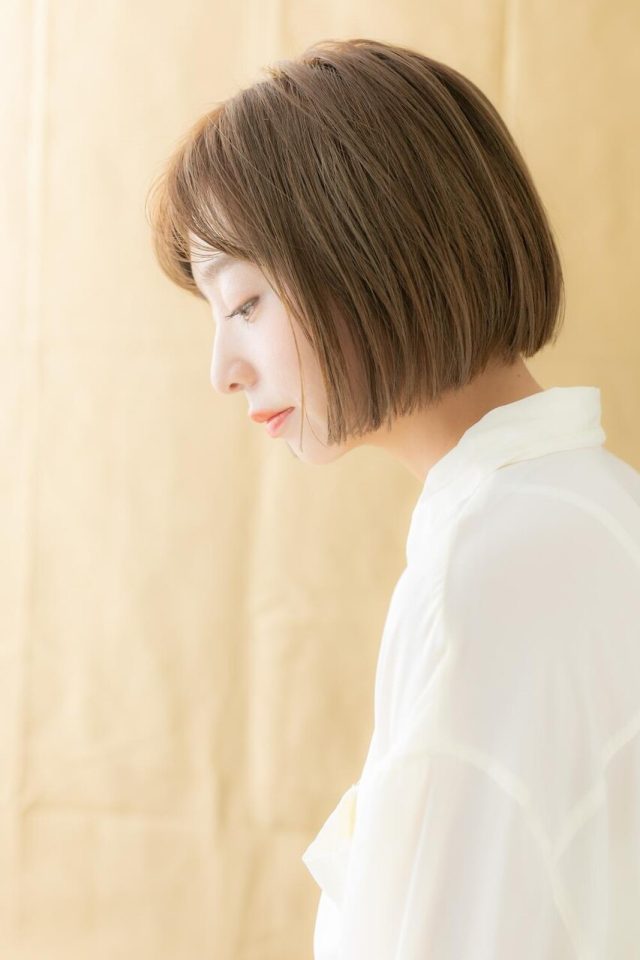 20代30代40代マロンベージュ前下がり小顔ぷつっとボブ
