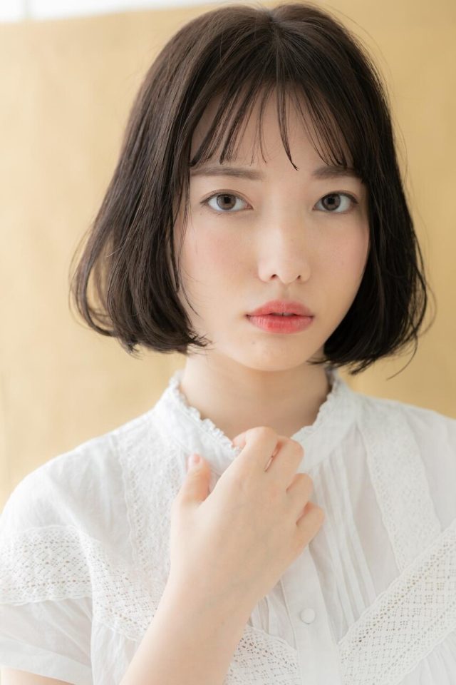20代30代40代黒髪ダークアッシュ前下がり小顔ミニボブ