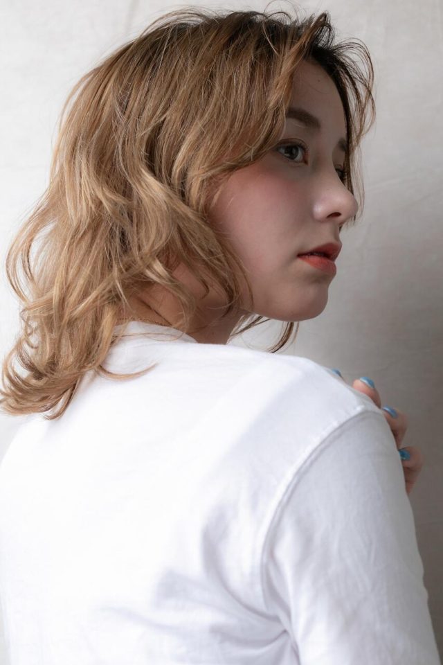 10代20代30代小顔フェザーバング外国人風ブロンドカラー