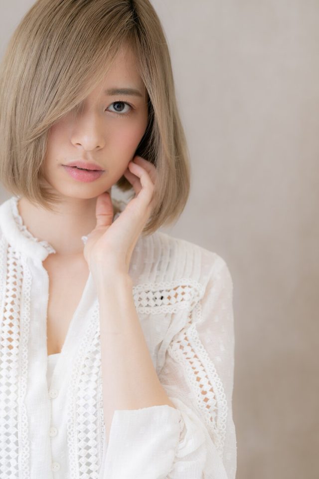 10代20代30代クールなホワイトカラーアシンメトリーボブ