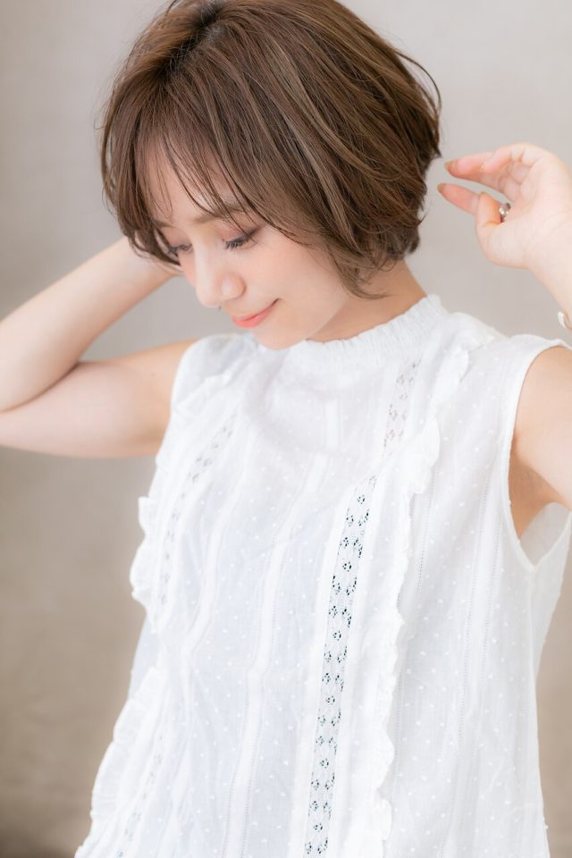 20代30代40代ココアブラウンアシンメトリー小顔ショート