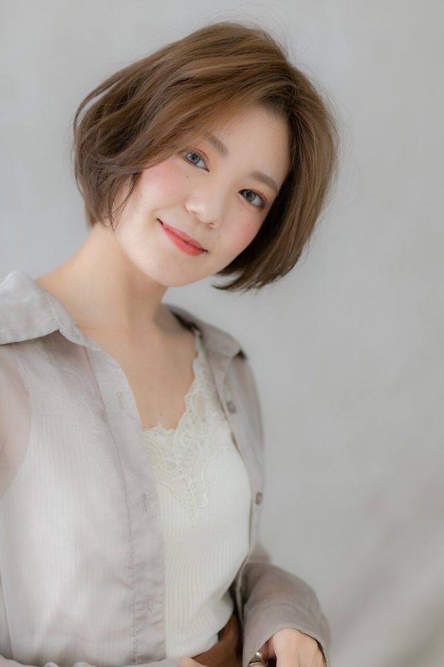 20代30代40代◎透け感オリーブカラーxかきあげ前髪グラボブ