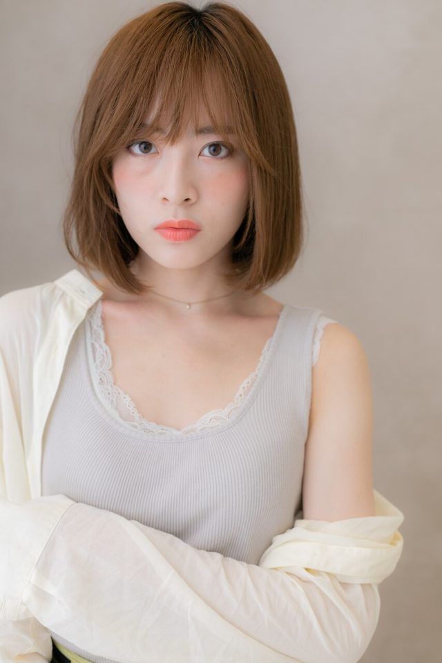 20代30代40代カーキニュアンスワンカール小顔ボブ