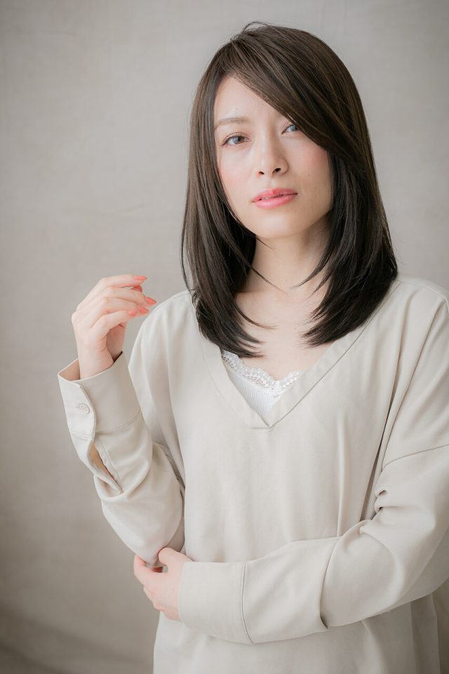 20代30代40代かきあげ前髪ダークアッシュ前下がりミディ