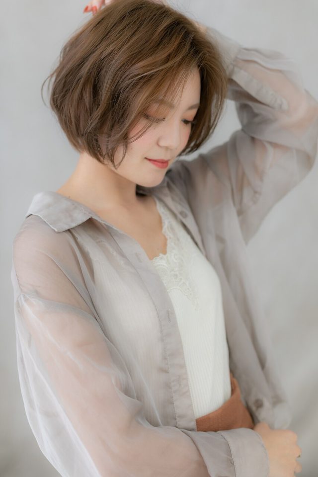 20代30代40代ヘーゼルベージュくせ毛風フェザーボブ