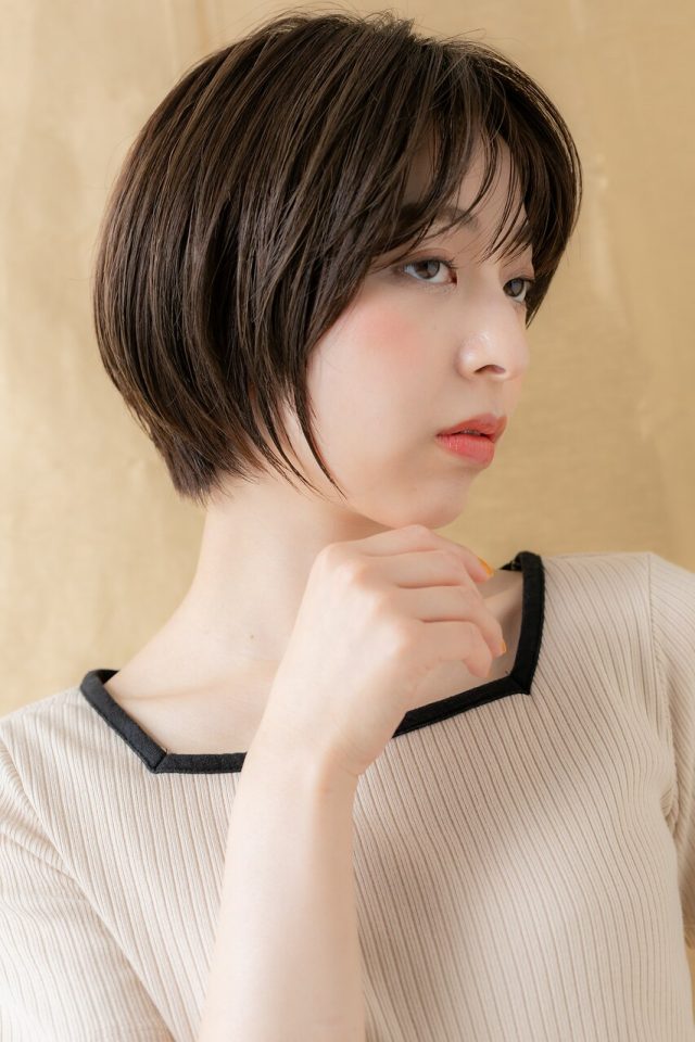 20代30代40代シースルー前髪黒髪小顔前下がりショート