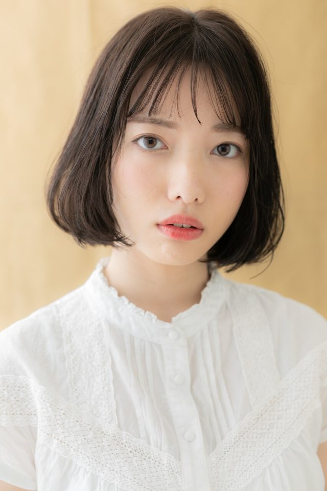 20代30代40代◆黒髪アッシュワンカール前下がりオン眉ボブ
