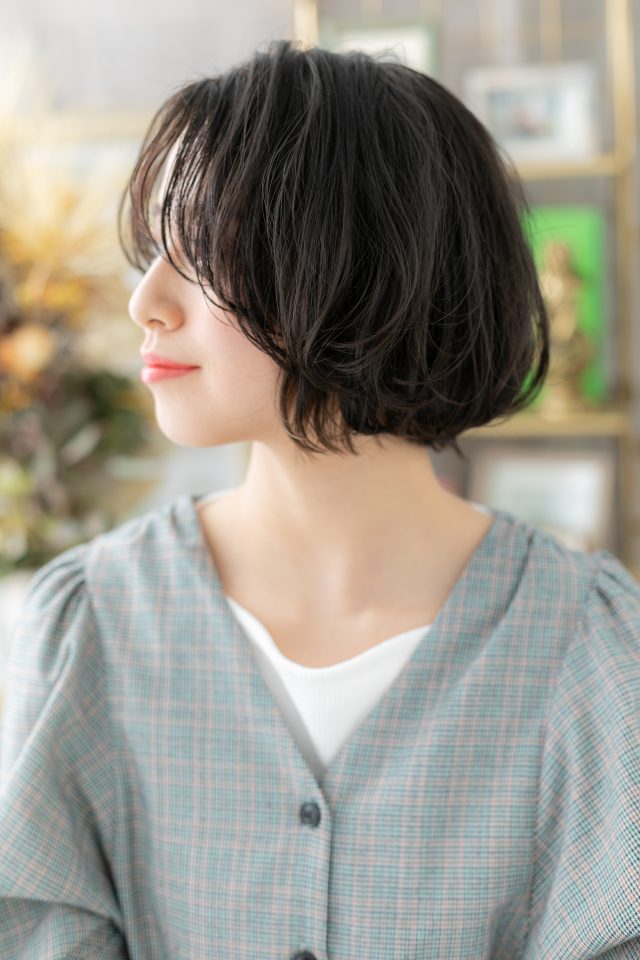 ミニボブマッシュボブ、切りっぱなしボブ丸みショートも人気。斜めバング厚めバングシースルーバングで小顔。くせ毛風ゆるふわミディや前下がり耳かけウルフも大人かわいい。(メイク担当:川口店伊与田)