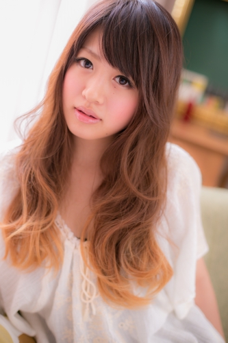 ゆったりとしたロングウェーブに、グラデーションカラーでカジュアルさもプラスしたスタイル。いつものウェーブロングから遊び感を出したいならオススメのスタイル!個性的,自分らしさ,斜めバング,大きめカールでヌーディ感,毛髪改善トリートメントで美髪に!
