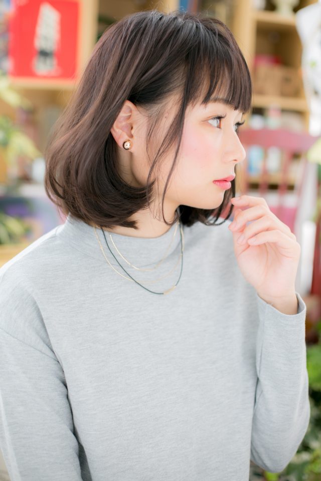 斜めバングや厚めバングで目元を印象つけたり、センターパートでクールにしてもGOOD。大人かわいい前下がりボブは、ナチュラルボブや大人ボブ、フェミニンボブからのイメチェンにオススメ。くせ毛風のふわミディも人気。ヒアルロン酸カラーは白髪にも対応可。