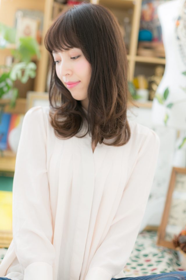 重めスタイルになりがちな黒髪セミディはたっぷりのレイヤーとくせ毛風ヴェールウェーブ動きを出して大人女子のコーデを完成。前下がりで輪郭カバーして小顔で美人度上昇です♪髪の色はグラデーションやベージュでトリートメントしたよううなカラーリングで髪の毛の悩みも解決!カラーはアッシュグレー、グレージュ、ブリーチなしもおすすめ!30代・40代にも◎