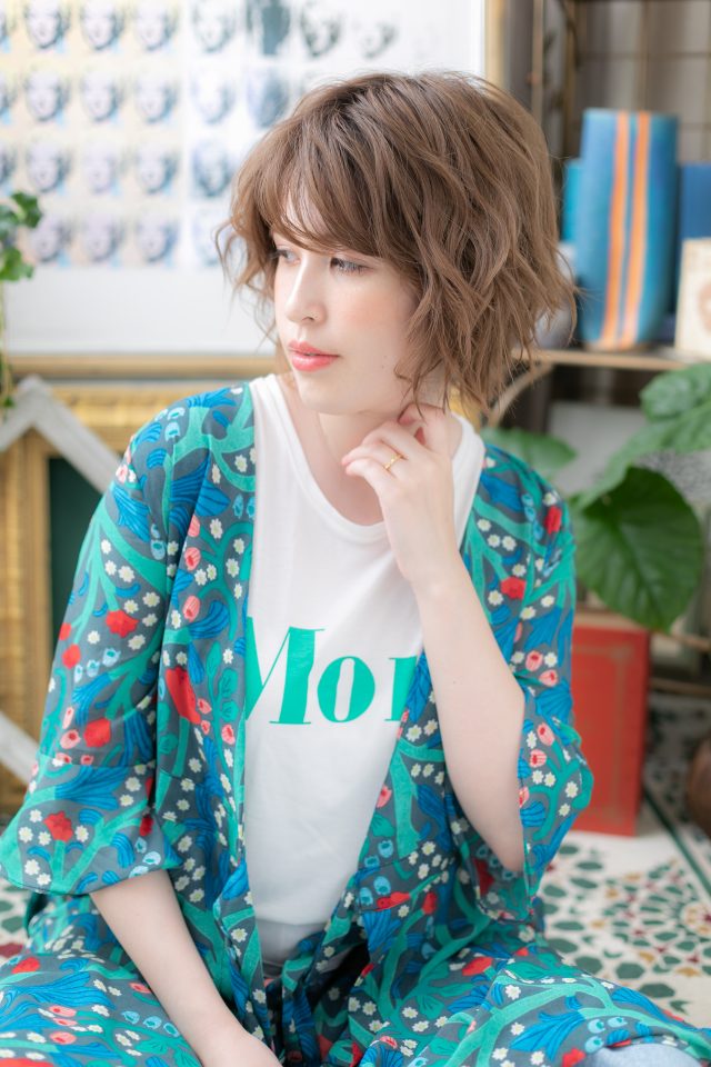 くせ毛風カールで大人かわいい雰囲気に仕上げた外国人風ふわミディで抜け感演出。前下がりで輪郭カバーして小顔見せで大人女子のファッション度UP。ミディアムを際立たせるグラデーションもおすすめ!(メイク担当:北浦和店 棟方)