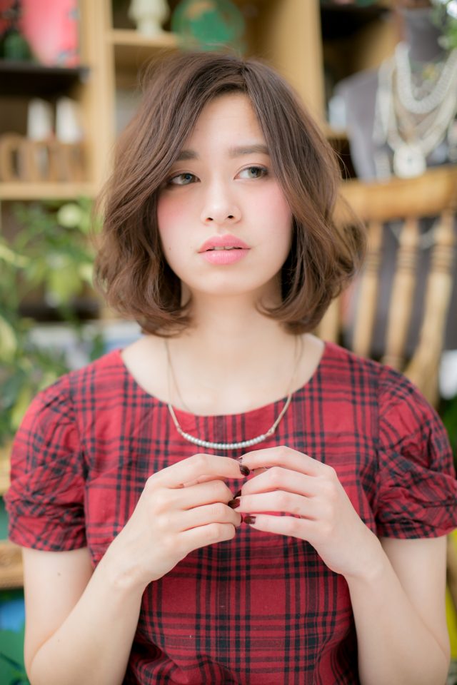 毛先のワンカール&前下がりで輪郭をカバーして小顔に。くせ毛風カールをつけたり、耳かけして大人かわいい。クールなセンターパートもOK!クラシカルな黒髪やオリーブアッシュ、グレージュもトレンド。人気のジョンマスター取り扱い有/20代/30代/40代/50代