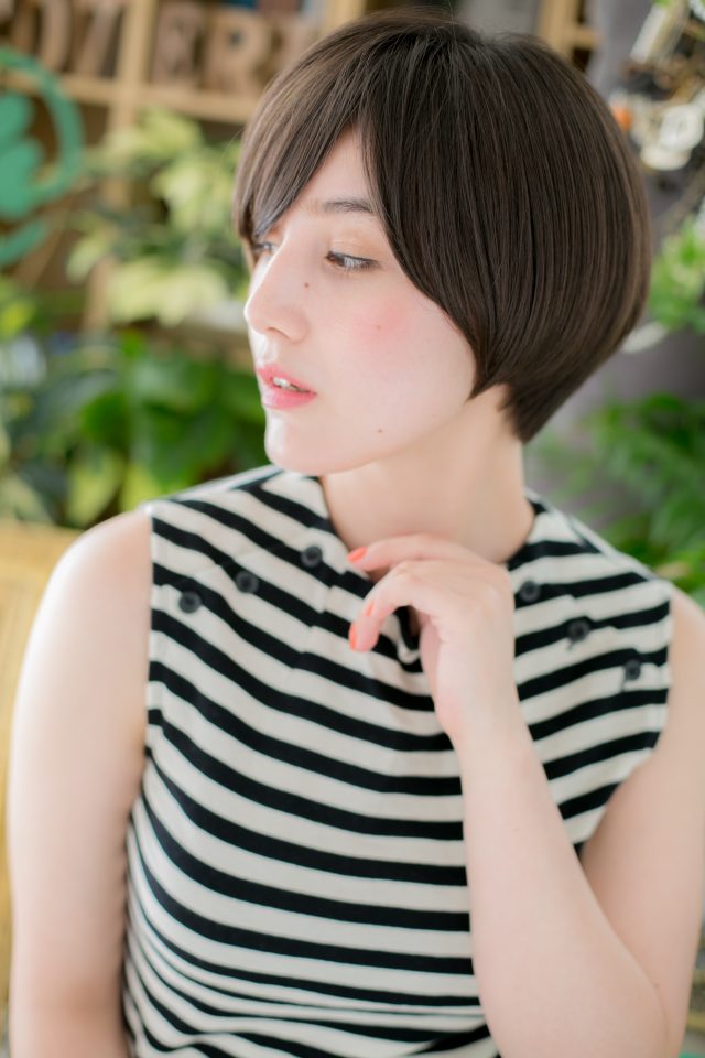 グラデーションボブベース。スッキリフォルムでコンパクトにまとめつつ、似合わせカットで美人顔に。長めの斜めバングで目元を印象つけて目力UP!サイドの毛流れで小顔見せもバッチリです☆(メイク担当:北浦和店 近藤)