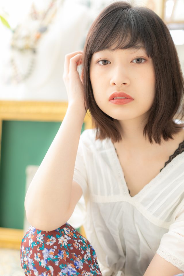 透け感斜めバングや厚めバングで目力強調で大人女子のコーデも完成。ミディアムヘアを際立たせるグラデーションもおすすめ!30代・40代も◎(メイク担当:川口店 成田)