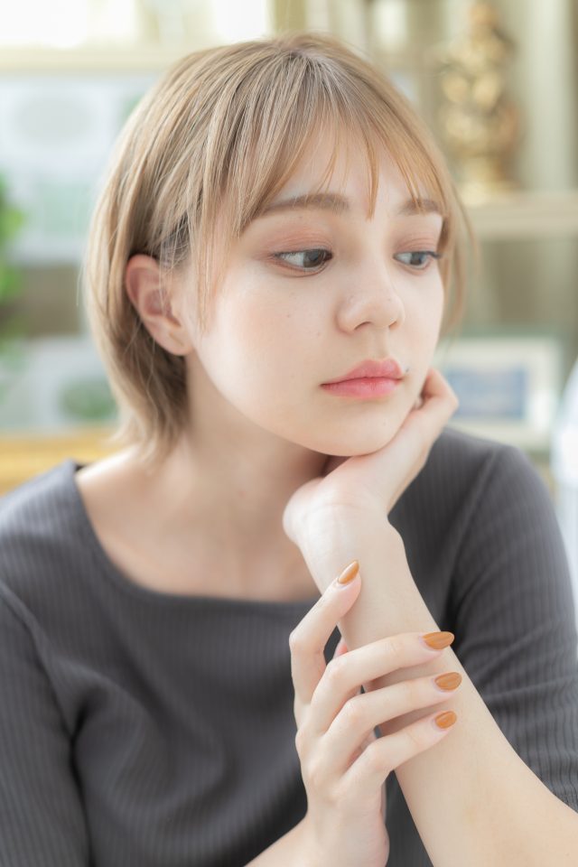 外国人風ミルクティアッシュ小顔ウルフボブ
