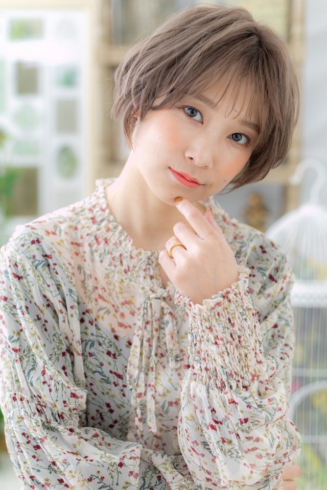 ナチュラルボブフェミニンボブ、大人ボブ前下がりボブ、マッシュボブも人気。くせ毛風ショートマッシュや耳かけ前下がりウルフで小顔。斜めバング厚めバングシースルーバングが大人かわいい。(メイク担当:川口店 岩淵)