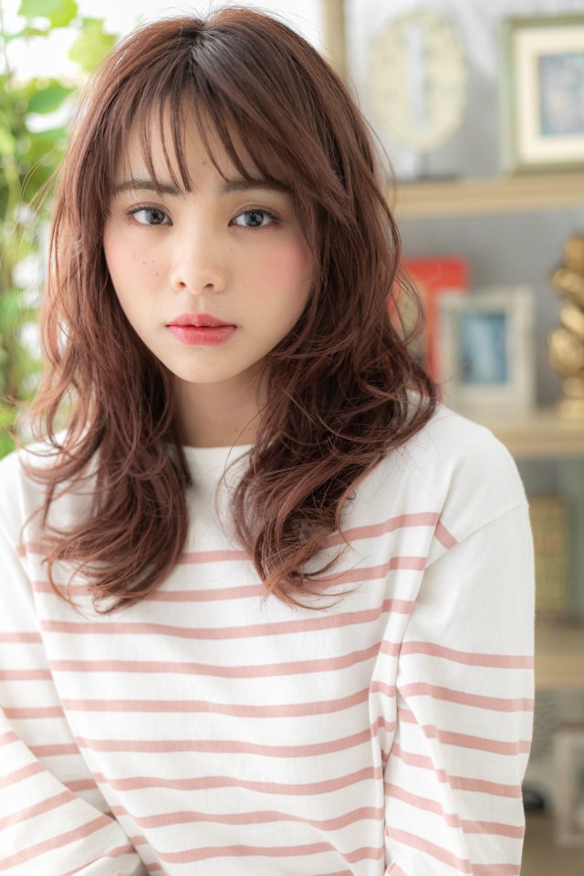くせ毛風ゆるふわミディ耳かけ前下がりウルフで小顔。ナチュラルボブフェミニンボブ,大人ボブ前下がりボブ,ミニボブが大人かわいい。斜めバング厚めバング,シースルーバングかきあげ前髪も◎