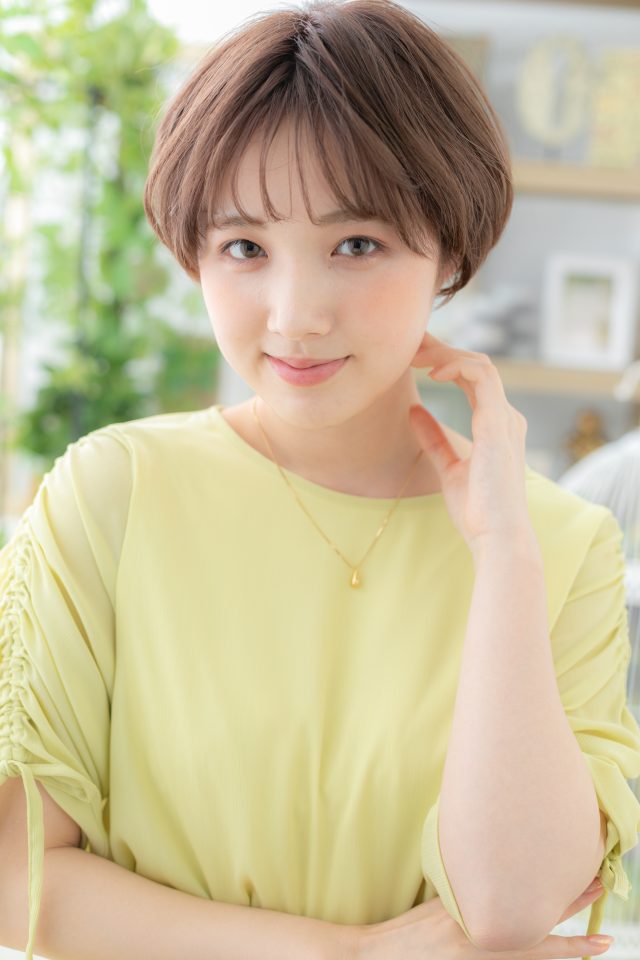 斜めバング厚めバングシースルーバングが大人かわいい。ナチュラルボブフェミニンボブ、大人ボブ前下がりボブ、マッシュボブが人気。くせ毛風ゆるふわミディや耳かけ前下がりウルフで小顔。(メイク担当:川口店 岩淵)