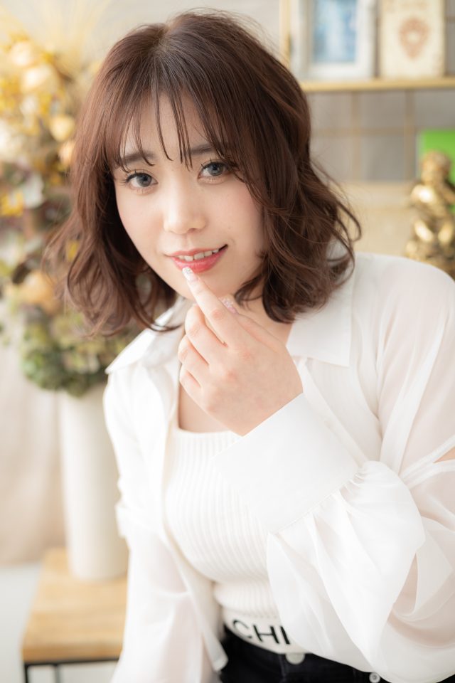 くせ毛風ゆるふわミディや耳かけ前下がりウルフが大人かわいい。斜めバング厚めバング、かきあげ前髪シースルーバングで小顔。ナチュラルボブフェミニンボブ、大人ボブ前下がりボブも人気。(メイク担当:北浦和店成田)