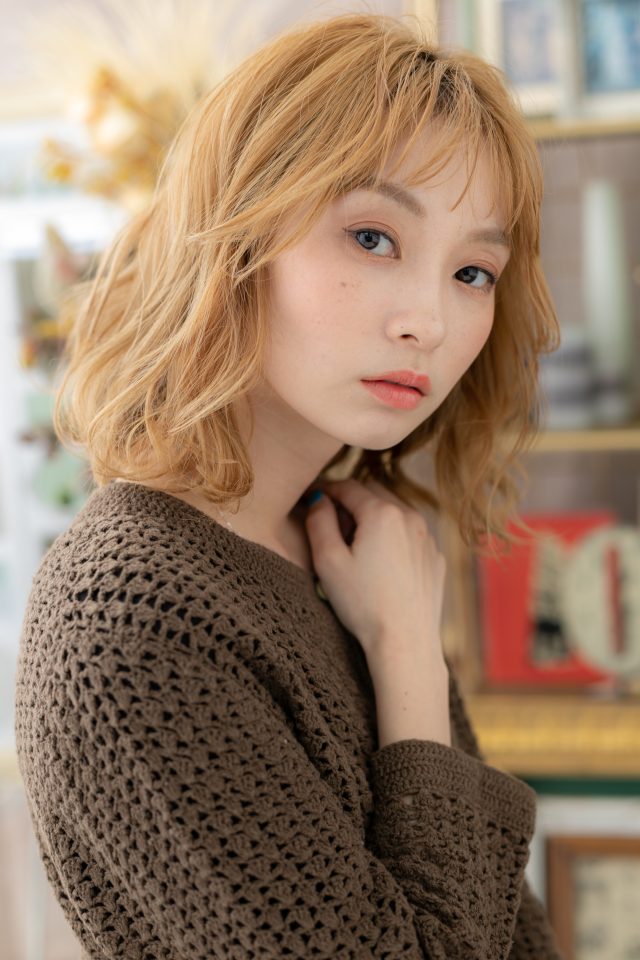 くせ毛風ゆるふわミディや耳かけ前下がり、韓国風ウルフも大人かわいい。斜めバング厚めバングシースルーバングで小顔。ナチュラルボブフェミニンボブ、マッシュボブ切りっぱなしボブも人気。(メイク担当:川口店岩淵)