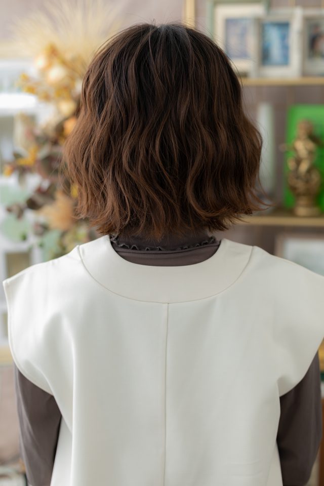 大人ボブ前下がりボブ、切りっぱなしボブマッシュボブからのイメチェンに。くせ毛風ゆるふわミディや耳かけ前下がりウルフも大人かわいい。斜めバング厚めバング、シースルーバングで小顔。(メイク担当:北浦和店成田)
