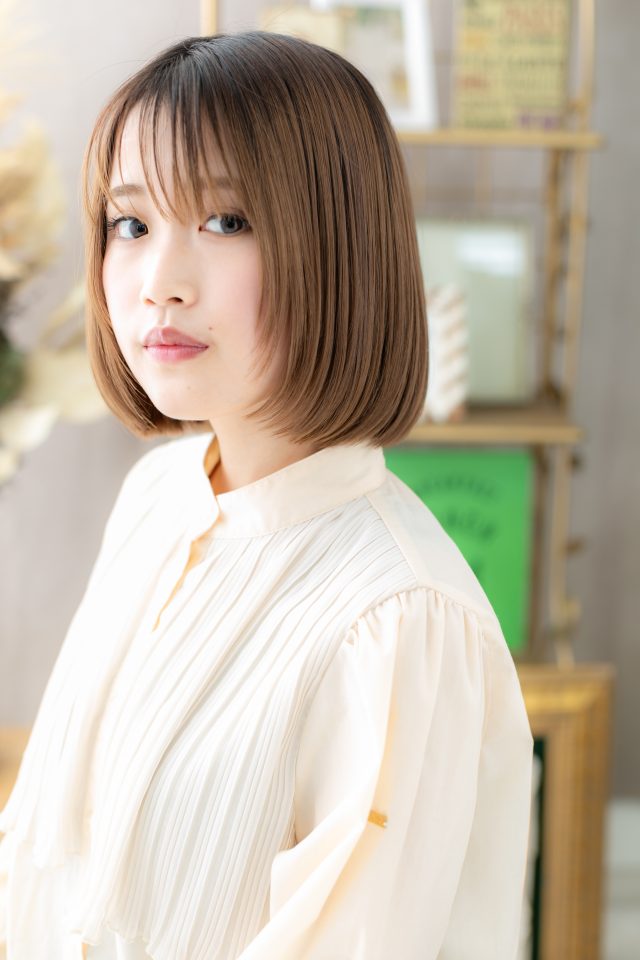 ツヤ髪シルキーベージュ切りっぱなしボブ