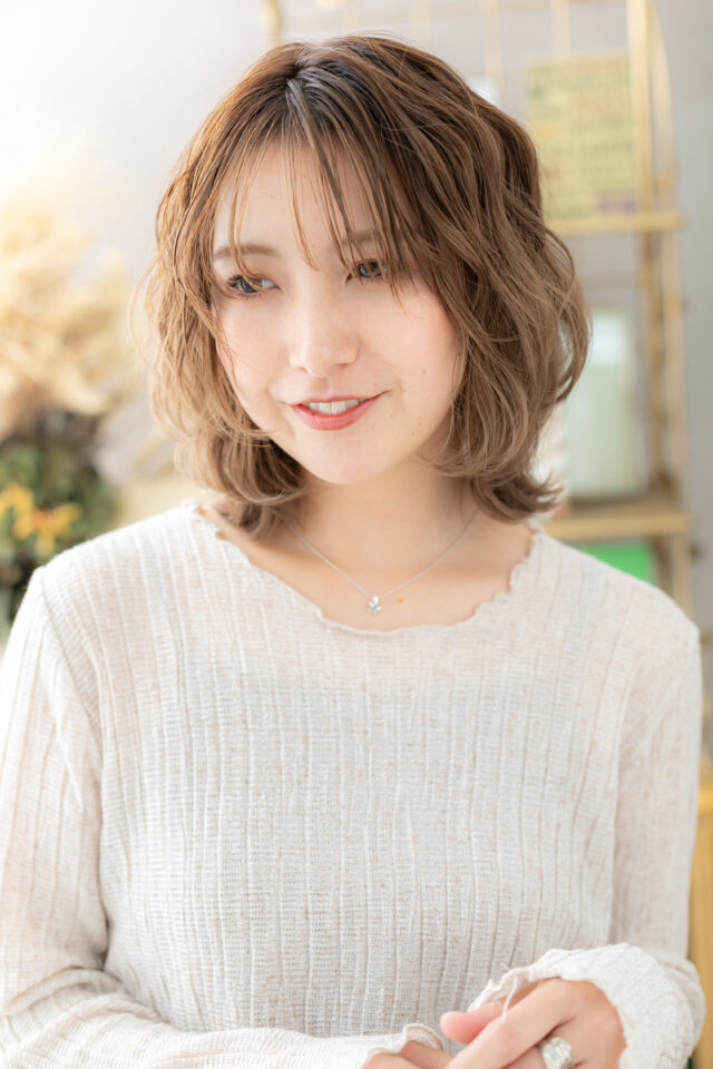 - バレイヤージュ/ハイトーンカラー/くせ毛風/ゆるふわ/ナチュラルボブ/フェミニンボブ/ふわミディ/大人ハイライト/韓国風/ボブ/ウェットヘア/ウルフ/耳かけ/前下がり/くびれショート/エアリーミディ/ナチュラル/20代/30代/40代