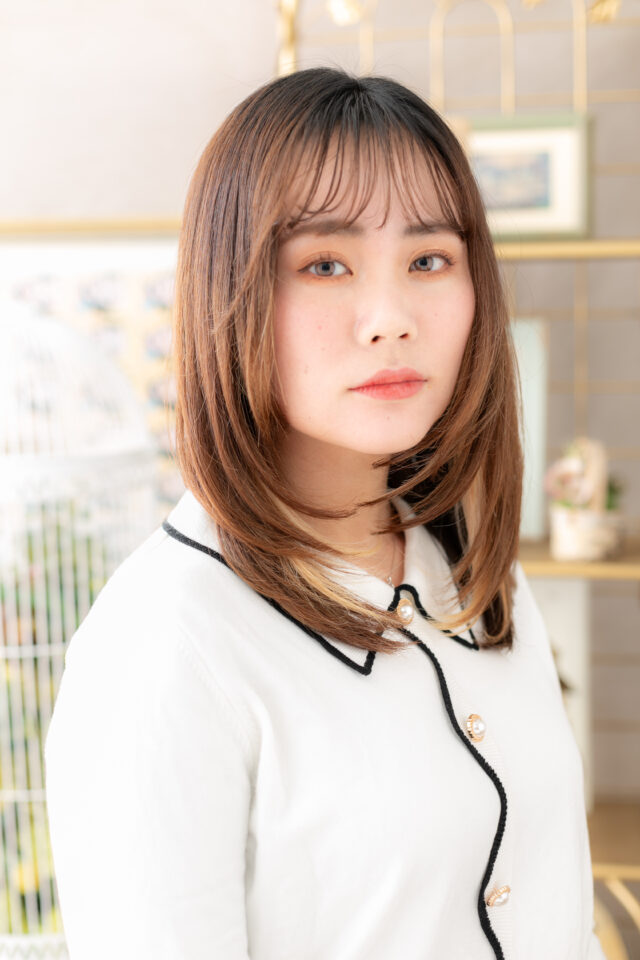 斜めバングやシースルーバング、うざバングや前髪パーマで目力強調。くせ毛風ゆるふわミディやニュアンスパーマも大人かわいい。耳かけアシンメトリーやセンターパートのヘアアレンジも小顔◎(メイク担当:川口店木村)