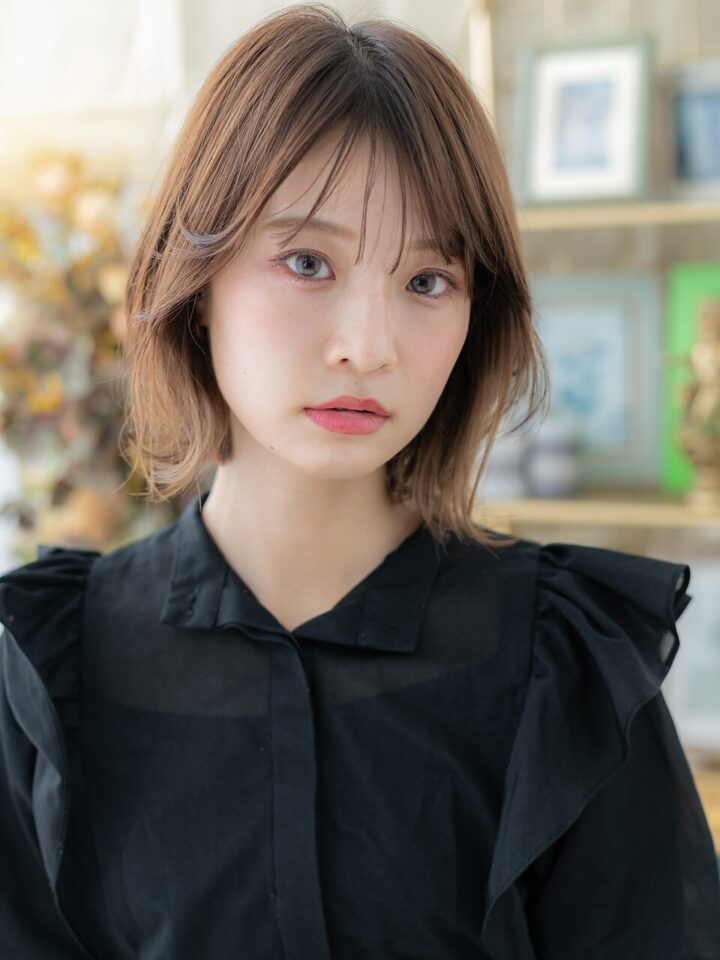 くせ毛風,ゆるふわ,ふわミディ,耳かけ,前下がり,ウェットヘア,大人かわいい,斜めバング,厚めバング,アシンメトリー,小顔,ナチュラルボブ,フェミニンボブ,大人ボブ,前下がりボブ,切りっぱなしボブ,ミニボブ,かきあげ前髪
