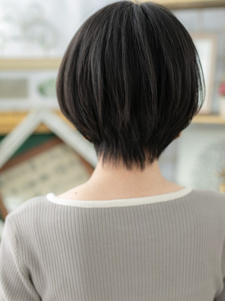 バレイヤージュ小顔前下がりショートマッシュ20代30代40代