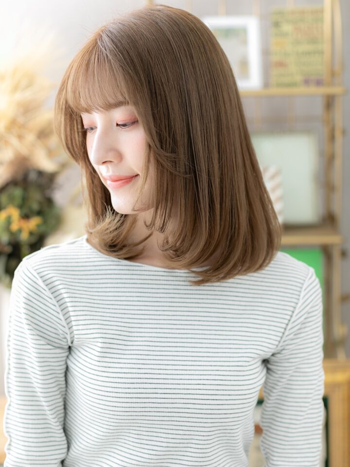 フェミニンボブ大人ボブ、マッシュボブ前下がりボブからイメチェンに。斜めバング厚めバング、シースルーバングかきあげ前髪で小顔。くせ毛風ゆるふわミディや耳かけウルフも大人かわいい。(メイク担当:川口店伊与田)