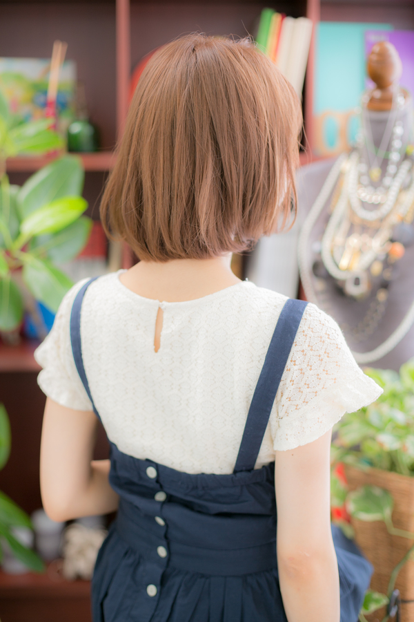 トリートメントオイルをなじませて、手グシでドライするだけの簡単スタイリング。顔周りをコロンとキュートに整えて小顔に♪