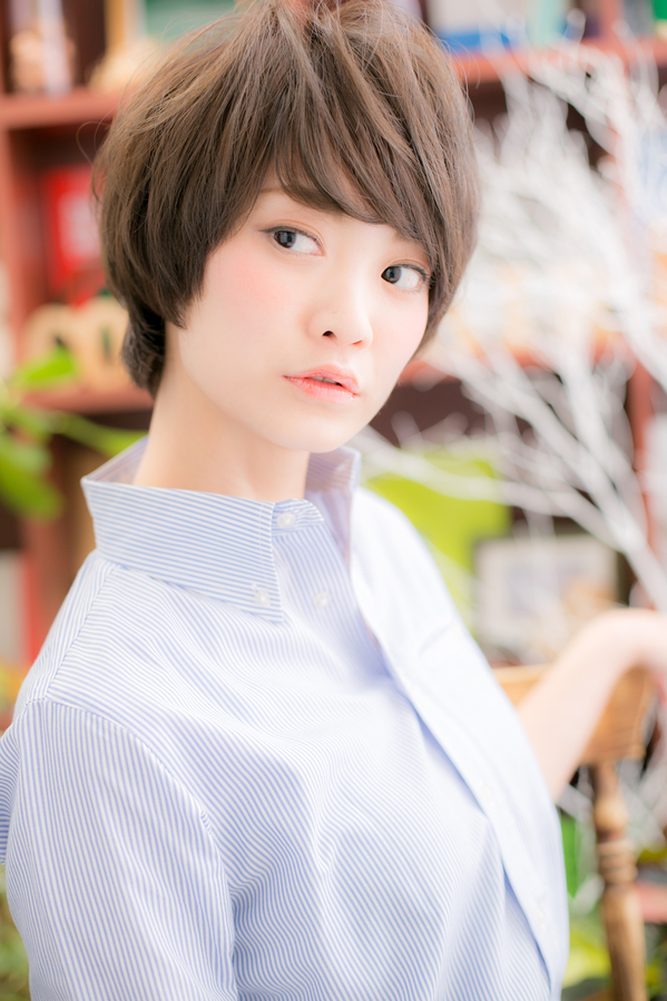 トップにややボリュームを持たせ、ふんわりやわらかな空気感を含んだフェミニンショート。縦長シルエットにすることでバランスのいい小頭ショートの完成です。和みあるスタイルにダークカラーをオンして、キリッとした芯の強さを感じさせる美人顔に☆