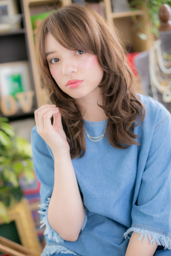 フリルのように織り重なった毛先のカールが綺麗にまとまったエアリーウェーブロング。ツヤ色カラーで表情もパッと明るく見せます☆