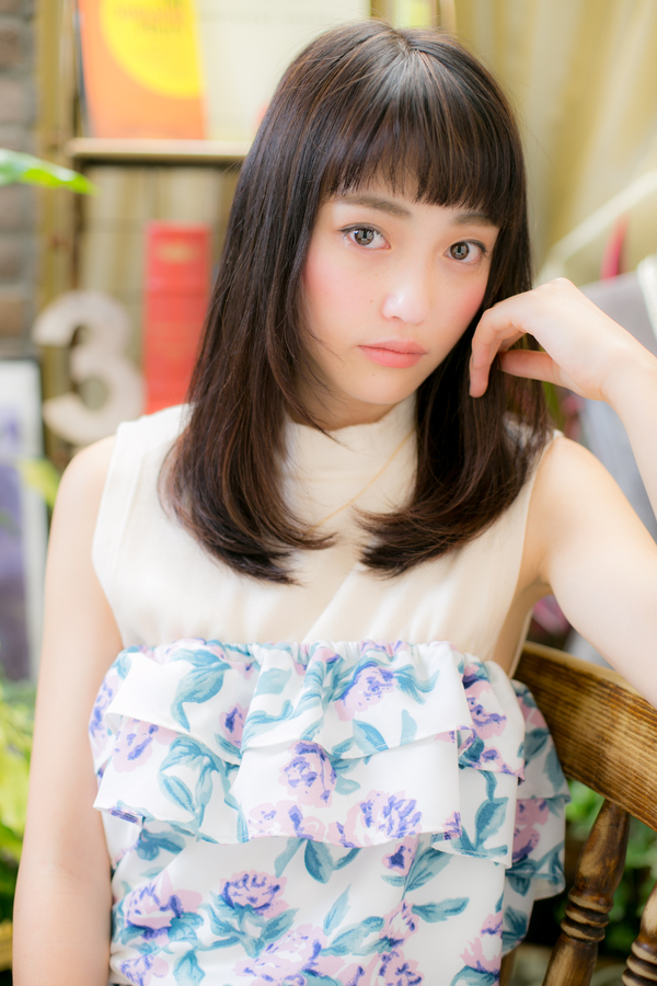 短めの前髪でガーリーさを出して、ダークトーンのアッシュ系カラーで印象的に。インパクトのあるストレートスタイルに仕上げてます☆